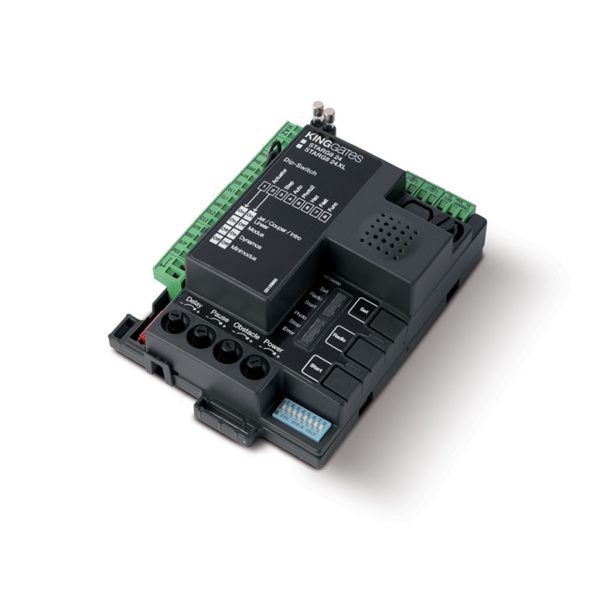 Ajustes prácticos por medio del trimmer, programación del recorrido en aprendizaje automático con una sola tecla, led de diagnóstico y dip-switch para configurar los modos de funcionamiento.